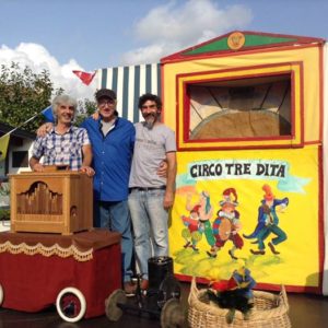 Alberto De Bastiani presenta lo spettacolo, suona un vecchio organetto di Barberia, coinvolge attivamente il pubblico, Paolo fa vivere gli acrobati, i domatori, i clown con tre dita della mano.